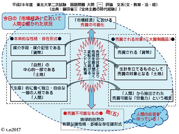 28年度東北大学評論の全体論理構造は、 最終段落末尾で「売買可能」と「売買不可能」の軸が浮かぶ!