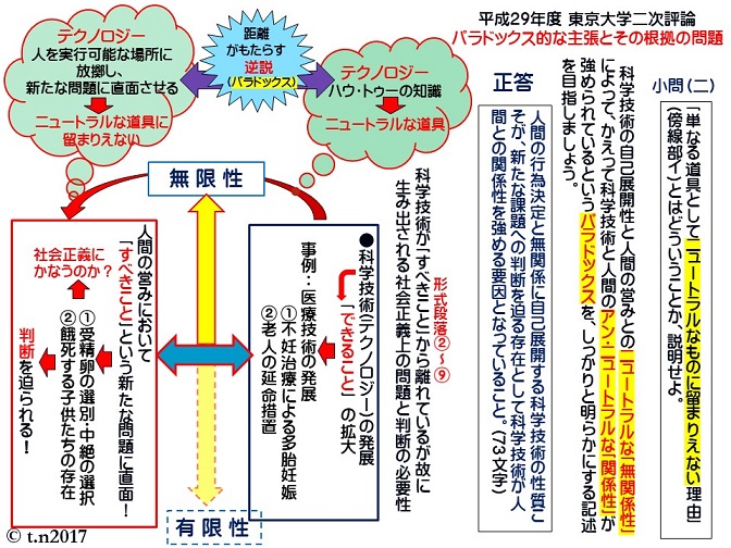 ●平成29年度大阪大学二次評論大問Ⅰの小問二(普通は最後に問われる全体問題が、今年度は小問二で問われています)